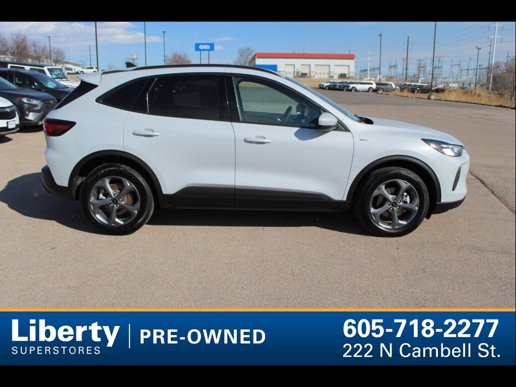 Upgrade your drive with this stylish Silver 2025 Ford Escape AWD ST-Line Select! Enjoy the confidence of All-Wheel Drive and a turbocharged EcoBoost 2.0L engine paired with an 8-speed automatic transmission for an exciting yet efficient ride. Stay connected and entertained with SYNC infotainment, Wireless Apple CarPlay & Android Auto, SiriusXM Satellite Radio, and a Wi-Fi hotspot. Experience advanced safety and peace of mind with features like Front & Rear Automatic Emergency Braking, Lane Keeping Assist, Pedestrian Detection, Rear Cross Traffic Alert, Blind Spot Monitoring, and a rearview camera. Comfort meets convenience with heated front seats, a heated steering wheel, power driver seat adjustments, automatic climate control, power liftgate, remote engine start, and push-button start. With sporty ST-Line styling, black roof rails, LED headlights, and chrome accents, this Escape stands out on any road. Don't miss out on this well-equipped, modern SUV ready for all your adventures! THIS VEHICLE CAN BE VIEWED IT AT LIBERTY MITSUBISHI VOLKSWAGEN AT 600 CAMBELL ST IN RAPID CITY, SOUTH DAKOTA (ACROSS FROM THE FAIRGROUNDS). IF YOU CANT MAKE IT DOWN, THEN CALL US AT 605-653-2656 AND TALK TO ONE OF OUR CERTIFIED SALES CONSULTANTS! WE LOOK FORWARD TO HEARING FROM YOU!