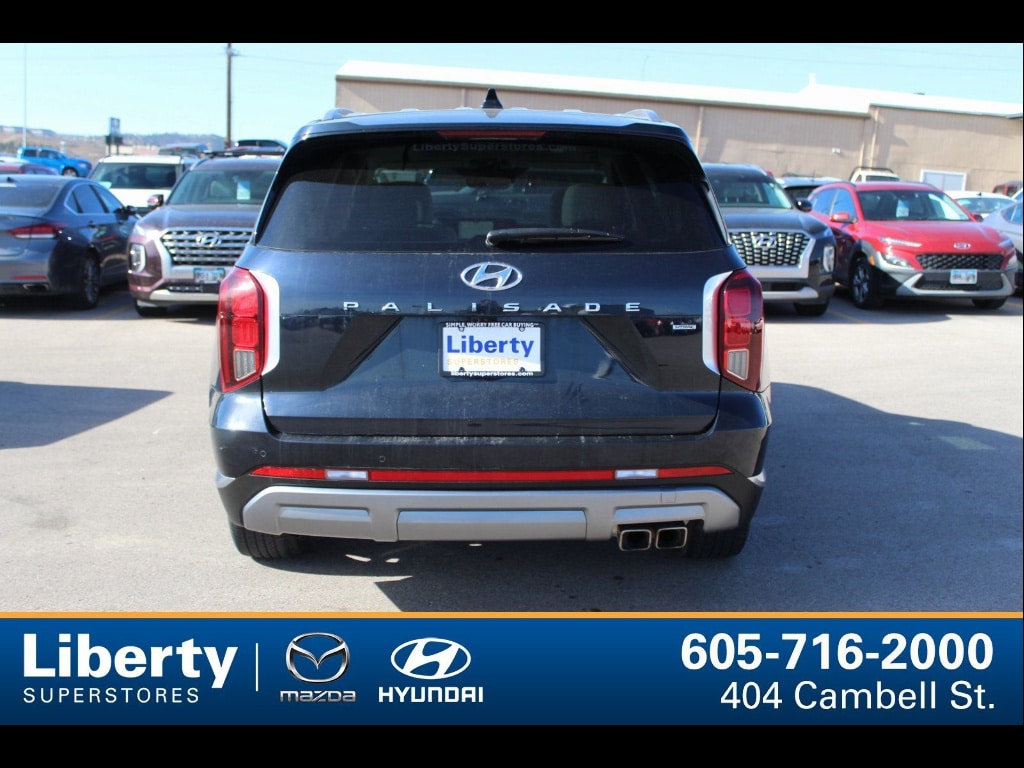 Experience premium family driving in this dark blue 2024 Hyundai PALISADE AWD Limited. With its powerful 3.8L V6 engine, 8-speed shiftable automatic transmission, and advanced All-Wheel Drive, you'll enjoy confident handling in any weather. The Limited trim pampers with leather-trimmed upholstery, heated and ventilated seats in both front and rear, and a panoramic moonroof for a refined ride. Stay connected and in control with a 12.3-inch touchscreen navigation system (OTA updates), Apple CarPlay/Android Auto, Harman/Kardon audio, and Blue Link app compatibility. Safety is top-tier: enjoy adaptive cruise control, surround view camera, lane keeping assist, intersection/junction collision avoidance, rear cross traffic alert, and a full suite of automatic emergency braking features. The power liftgate, third-row USB-C outlets, and flexible seating ensure maximum convenience for up to 7 passengers. Ready for road trips, daily drives, and everything in between-don't miss your chance to drive a top-rated, luxurious SUV loaded with technology and comfort.