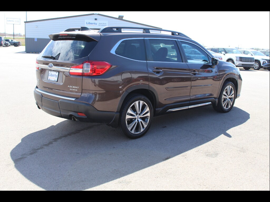 Discover comfort and capability in this 2020 Subaru Ascent AWD Limited 7-Passenger SUV, finished in eye-catching Cinnamon Brown Pearl. With seating for seven and captain's chairs in the second row, this Ascent is ready for family adventures or weekend getaways. Enjoy peace of mind with Subaru's full-time all-wheel drive, front and rear automatic emergency braking, lane keeping assist, blind spot detection, rear cross-traffic alert, and adaptive cruise control. Stay connected with the 8-inch STARLINK infotainment system featuring Apple CarPlay, Android Auto, Bluetooth, and multiple internet radio apps. Premium features include leather-trimmed upholstery, heated front and rear seats, a heated steering wheel, power liftgate, panoramic moonroof, and black roof rails for extra cargo. Benefit from all-weather floor mats, cargo tray, and rear seat back protector for year-round protection. This Ascent delivers strong turbocharged performance and advanced safety in a spacious, well-appointed package-perfect for growing families or anyone needing extra versatility.