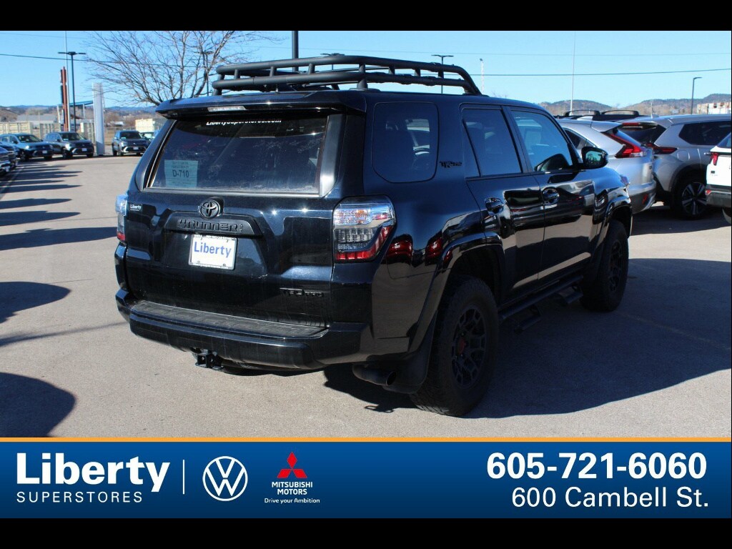 Conquer any terrain in this 2023 Toyota 4Runner 4x4 TRD Pro! This rugged SUV boasts a powerful 4.0L V6 engine with 270hp, part-time 4WD, and an off-road tuned suspension with front and powertrain skid plates for serious adventures. Stay connected and entertained with an 8-inch touchscreen, JBL premium sound, Apple CarPlay, Android Auto, Amazon Alexa, and Wi-Fi hotspot capability. The TRD Pro package adds style and function with a hood scoop, black roof rails, and a power moonroof. Drive with confidence thanks to advanced safety features like adaptive cruise control, front automatic emergency braking with pedestrian detection, blind spot monitoring, rear cross traffic alert, and a surround view camera system. Enjoy luxury touches including heated leatherette seats, power driver adjustment with lumbar support, and dual-zone automatic climate control. With integrated navigation, smart device app compatibility, trailer hitch and wiring, and a spacious, versatile cargo area, this 4Runner TRD Pro is ready for your next journey. Well-maintained and ready to go!