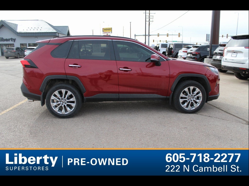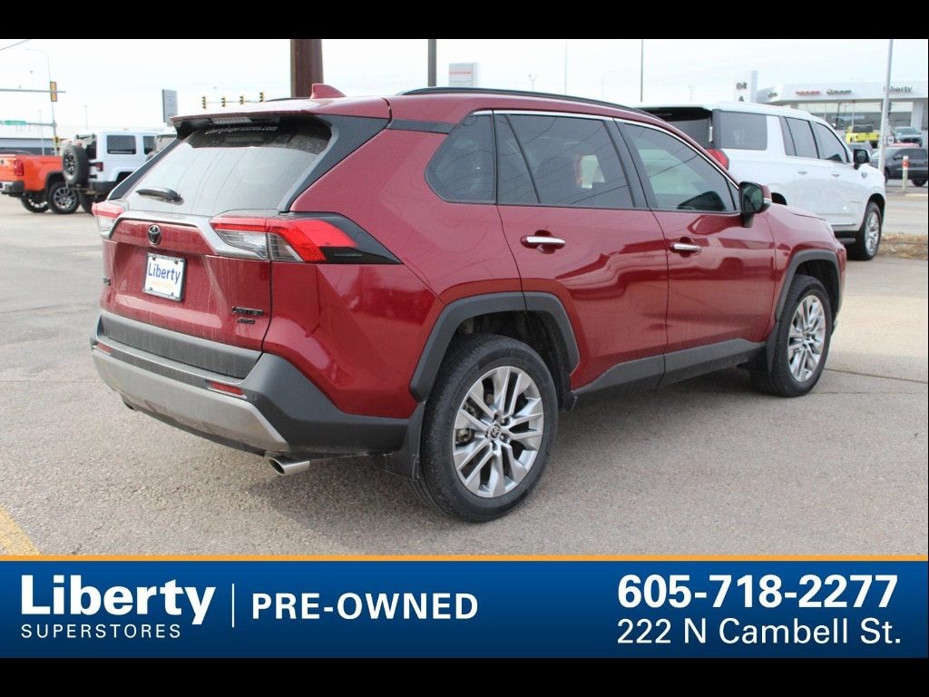 Experience the refined power and capability of the 2024 Toyota RAV4 AWD Limited in striking red! This all-wheel drive SUV features a smooth 8-speed automatic transmission and a robust 2.5L I4 engine with 203hp. Enjoy premium comfort with leatherette upholstery, heated and ventilated front seats, driver memory settings, and a power moonroof. Stay connected and in control with the Advanced Technology Package, 10.5-inch multimedia touchscreen, wireless Apple CarPlay/Android Auto, JBL premium audio, and built-in navigation with over-the-air updates. Safety comes standard with adaptive cruise control, blind spot monitoring, rear cross traffic alert, lane centering, automatic emergency braking (front/rear/pedestrian), and more. The Weather Package adds heated side mirrors and all-weather liners, while black roof rails and chrome wheels enhance style and versatility. Don't miss this top-of-the-line SUV that blends advanced technology, upscale comfort, and Toyota reliability-schedule your test drive today! THIS VEHICLE CAN BE VIEWED IT AT LIBERTY MITSUBISHI VOLKSWAGEN AT 600 CAMBELL ST IN RAPID CITY, SOUTH DAKOTA (ACROSS FROM THE FAIRGROUNDS). IF YOU CANT MAKE IT DOWN, THEN CALL US AT 605-653-2656 AND TALK TO ONE OF OUR CERTIFIED SALES CONSULTANTS! WE LOOK FORWARD TO HEARING FROM YOU!